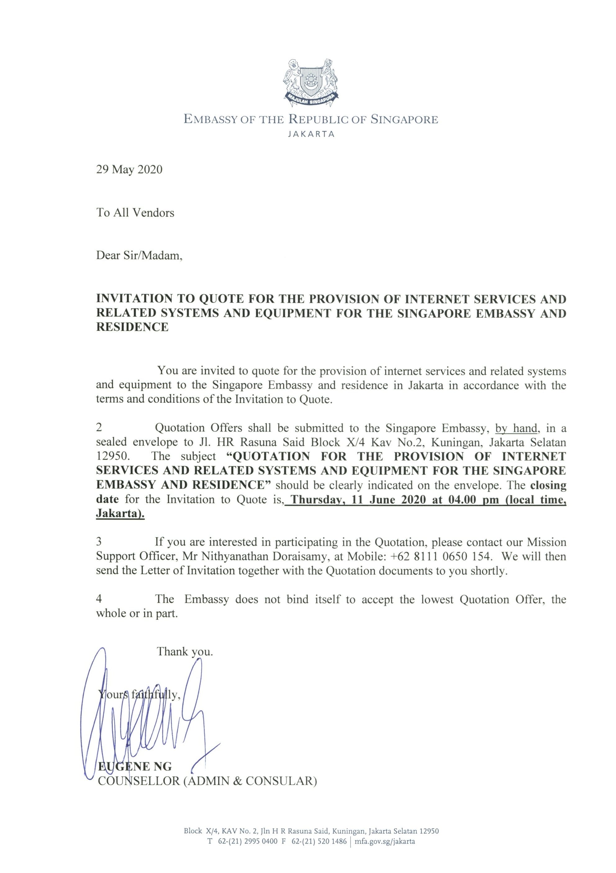 INVITATION TO QUOTE FOR THE PROVISION OF INTERNET SERVICES AND RELATED SYSTEMS AND EQUIPMENT FOR THE SINGAPORE EMBASSY AND RESIDENCE